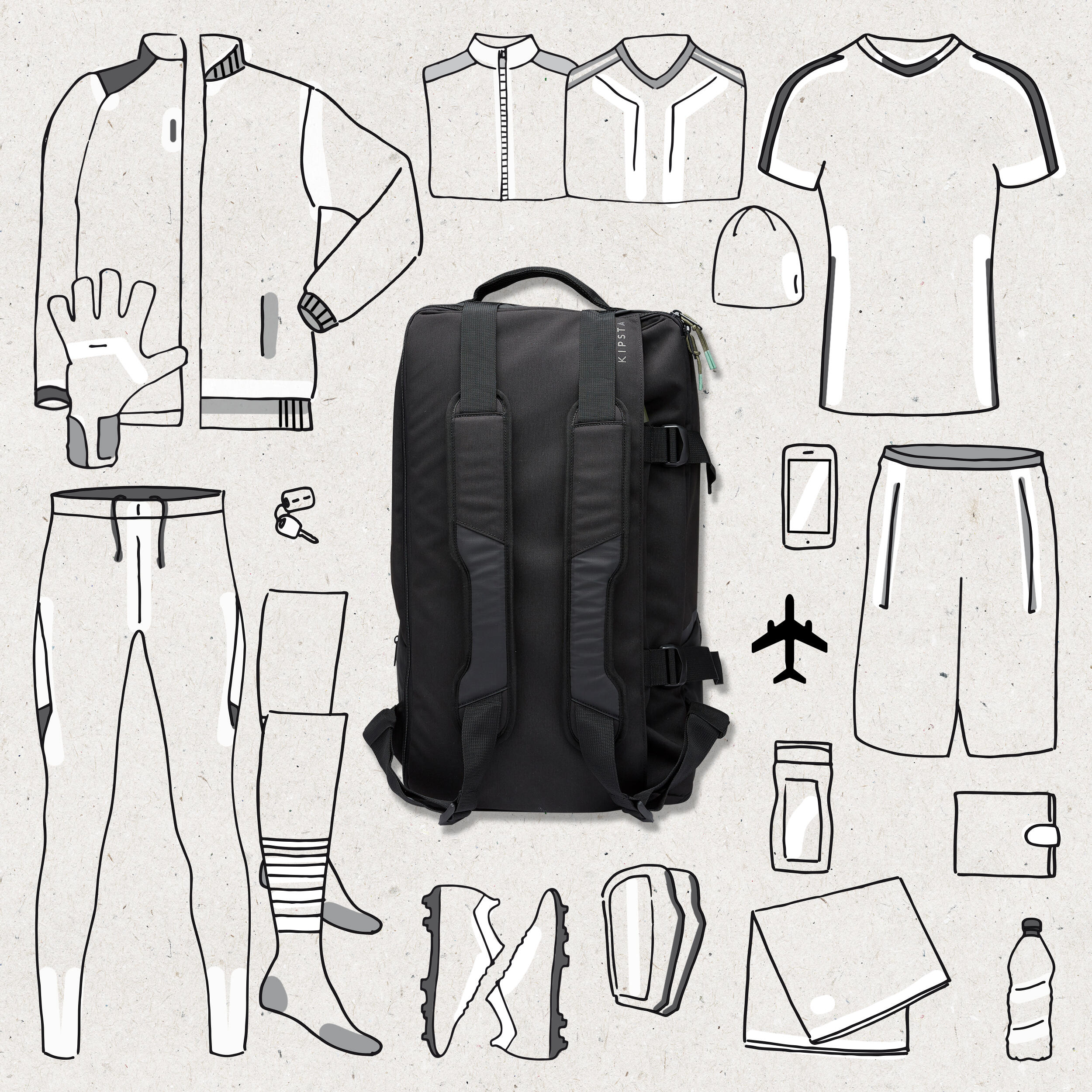 This 55 L (12 gal) sports bag is designed for athletes who travel in urban areas. The bag is also great for trips. How do you like to travel, on foot or by bike? This bag doubles as a backpack to make getting around easier. It expands to accommodate all the gear you’ll need in any season.